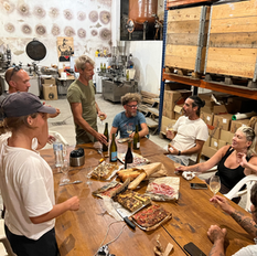 Bruno was on his last week of harvest, most of his fruits had already been processed, but he welcomed me in his cellar with my project. I contacted Philippe Wies, Domaine de la Petite Baigneuse in Maury. He was about to start his harvest. He agreed to sell me grapes to make my wine. Philippe was extremely generous and let me choose the grapes I preferred. The harvest day was festif, I gather a team of friends (Marc Frandon, Amélie & Sam who harvested for Bruno, Grégoire, Philippe, Thomas, and Seb) and they got to work. I was there supervising, cutting a cluster here and there, but I couldn't carry a bucket. It was putting too much pressure on my wounds. After harvest, we sat down together to share some deliciousness from the region and taste some of Philippe's wines.